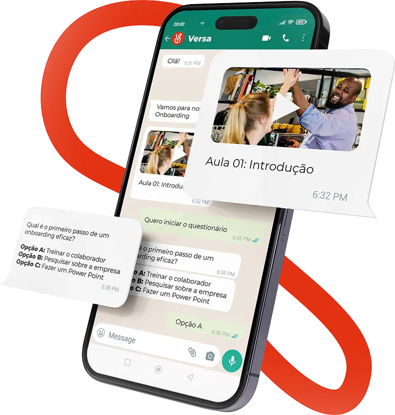 Podemos entregar a sua trilha de integração por Whtaspp de forma totalmente interativa, juridicamente válida e com engajamento de mais de 90%.